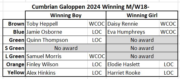 Sadly the final Galoppen of the series (to be hosted by Lakeland Orienteering Club) had to be cancelled due some typical Lake District extreme weather. This event is to be rescheduled in January 2025. This means final scoring of the galoppen series conclude after the event at Threlkeld Knotts hosted by West Cumberland Orienteering Club.
